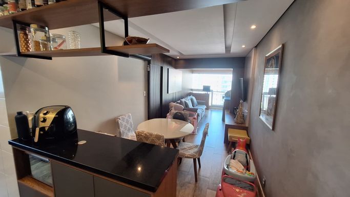 Apartamento Decorado à Venda – 66m² 66m² 1 suíte (formatação atual com sala estendida, podendo retornar ao 2º dormitório) Sala de estar e sala de TV Varanda ampla com churrasqueira automatizada Cozinha americana Área de serviço 2 banheiros 2 vagas de garagem Totalmente mobiliado (exceto itens de decoração) Finamente decorado por profissional Automação residencial Itens que permanecem no imóvel Box de cama queen com baú (sem colchão) + 2 criados-mudos Cortinas (quarto e sala/varanda) Ar condicionado (sala e quarto) Coifa, cooktop, forno elétrico e micro-ondas Sofá fixo com gavetas Placa giratória da churrasqueira com controle remoto Armários embutidos em todos os ambientes Chuveiros, lustres e torneiras Aquecedor a gás Condomínio com lazer completo: Piscina Salão de festas Jardim Valores: Venda: R$ 950.000,00 Condomínio: R$ 617,00 IPTU: R$ 150,00 Características adicionais: Aceita animais Piso de madeira e piso frio Churrasqueira na varanda Excelente localização com fácil acesso a transportes públicos, hospitais, universidades, academias, mercados, bancos e comércio em geral Agende sua visita!