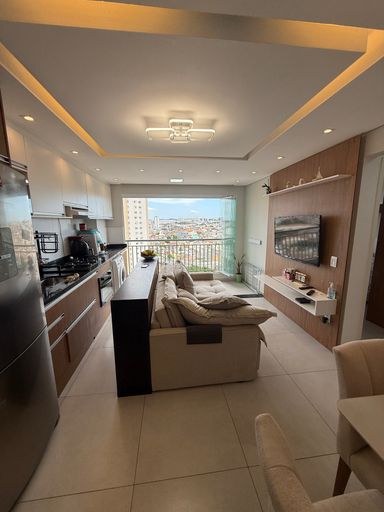 Apartamento de 72m² com sala grande e sacada, cozinha grande, lavanderia separada, dois dormitórios sendo um com suíte e armários, lazer com piscina, churrasqueira, salão de festas, playground e segurança 24hs. Ótima localização Vila Ré próximo aos comércios, escolas entre outros. Agende uma visita.