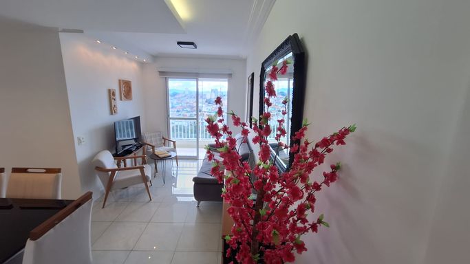 Lindo apartamento com excelente padrão de acabamento e pronto para morar. O imóvel conta com: Cozinha planejada equipada com cooktop e forno embutido Sala de estar ampla com painel e rack para TV, ideal para receber visitas Cozinha toda planejada com cooktop e forno. Varanda com envidraçamento. Banheiros com box de vidro e armários planejados 1 dormitório espaçoso com closet, oferecendo conforto e praticidade Ambiente moderno, bem distribuído e perfeito para quem busca funcionalidade e elegância no dia a dia. Excelente condomínio com segurança 24 hs. Lazer completo com piscina infantil e adulto, academia, mini mercado, salão de festas, área gourmet com churrasqueira, brinquedoteca, salão de jogos, quadra, pet place, sauna, agende uma visita.
